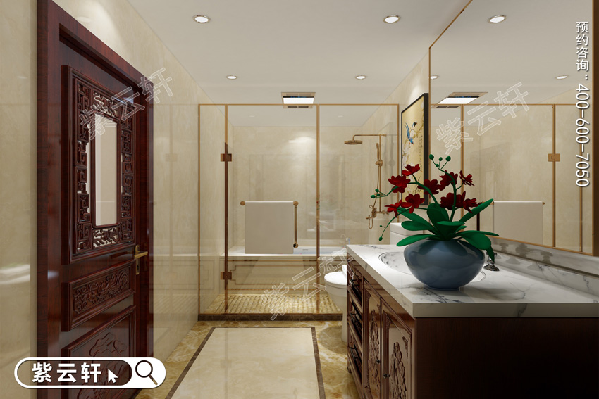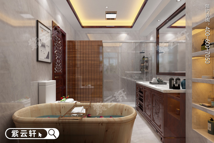 很多人有这样的疑问,整体家居选择的是古典中式装修,那么卫浴室要不要选择中式呢?其中放置洗濑用品的柜子要不要选择红木的呢?在设计制作的时候要注意哪些问题呢?答案是肯定的,为了打造统一的风格,卫浴室我们也是要选择古典中式的,不仅可以带来精致优雅的修气息,更能打造别具一格的家居空间。