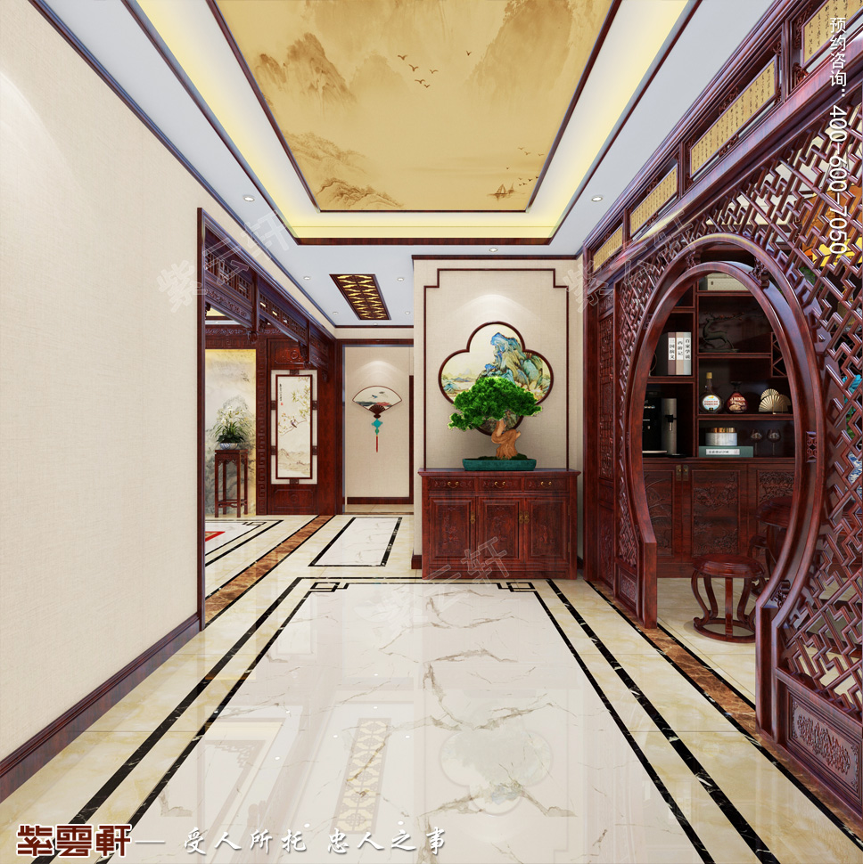来到门厅,瞬间被中式的豪华典雅所折服,温暖精致的大灯把整个空间的美都凸显出来,真是一个和谐的环境,一片诗意的田园!