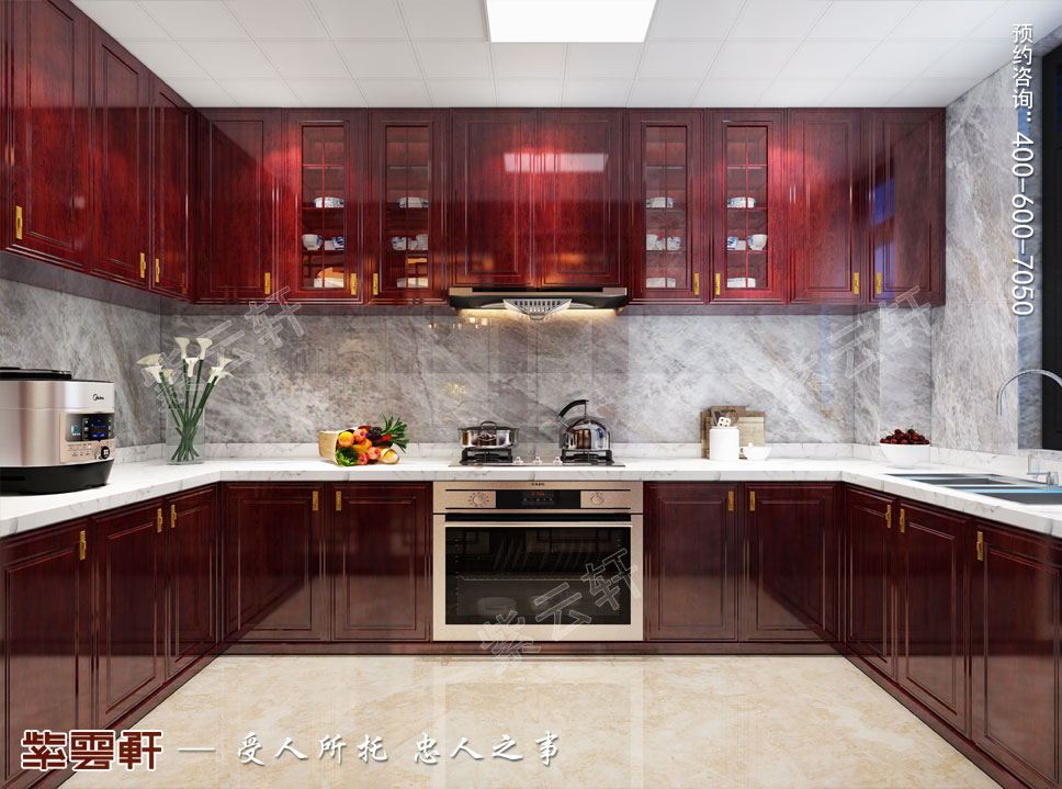 厨房采用现代中式简约风格,大理石地板简约中尽显大气。