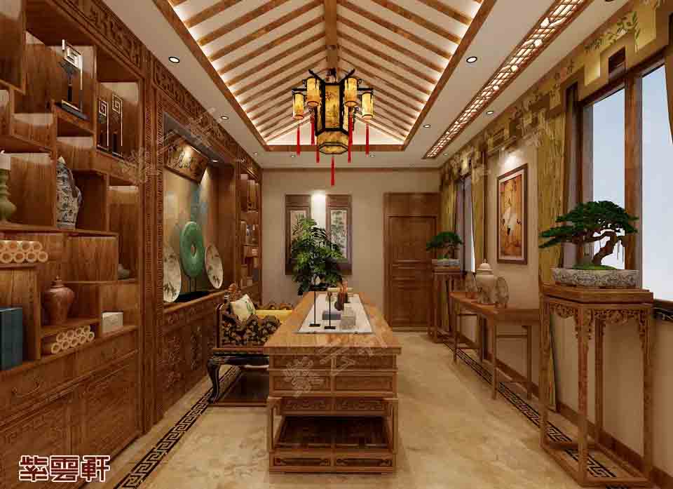 大气中有精美,奢华中见儒雅。文房四宝俊逸飘然,古玩瓷器引人注目。书房的气质和气度令人心折。靠窗的暖阁还能品茗对弈,消遣时光。