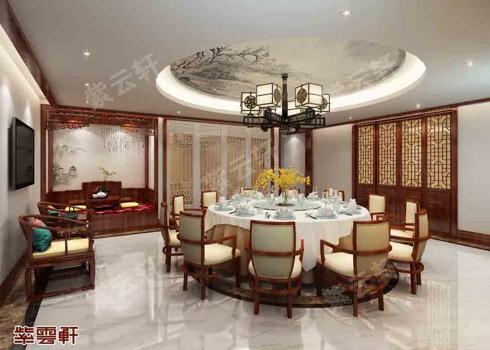 在叨扰进餐时,发现餐厅设计很有特色。藻井上的大幅国画意境优雅清淼,素雅愈浓,罗汉床极有古风古韵,氛围之下,我们大快朵颐,宾主尽欢。