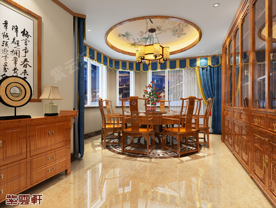 来到客厅,将中式装修大气恢宏,古色古香的气质体现的淋漓尽致,一套奢华质感的红木桌椅摆放在中间,就把整体气质凸显了出来,再装饰一些锦上添花的物件,真的是极美了!