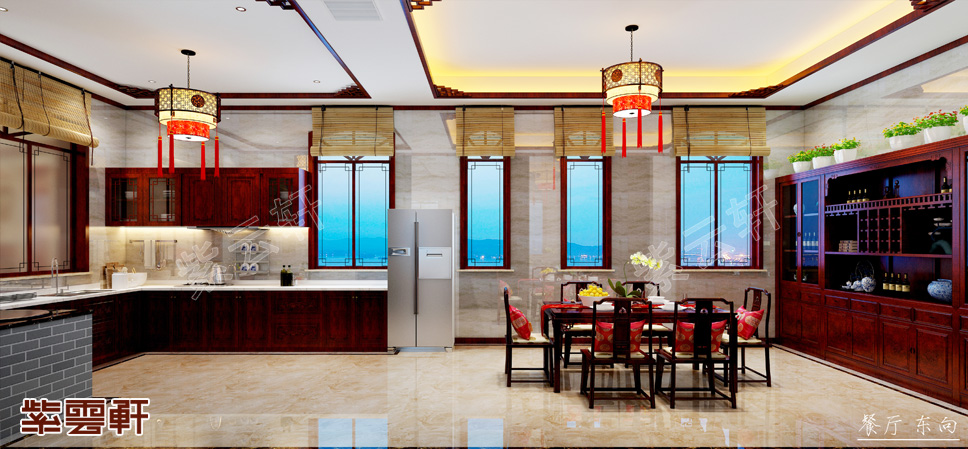 餐厅的中式装修,让你仿佛穿越到明清时代,去体会艺术园林的风格,浓厚的古风情韵,一家人围着餐桌谈笑风生,在大宫灯微黄的灯光映照下更显温馨。