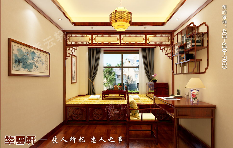 庾公爱秋月,乘兴坐胡床。暖阁设计雅致清新,整个空间的红木家具,细腻精致,也唯有中式装修才能将这种传统意境发挥到极致。无论您是挥毫泼墨,或是品茶茗香,满屋的诗意都能让人成就满满。