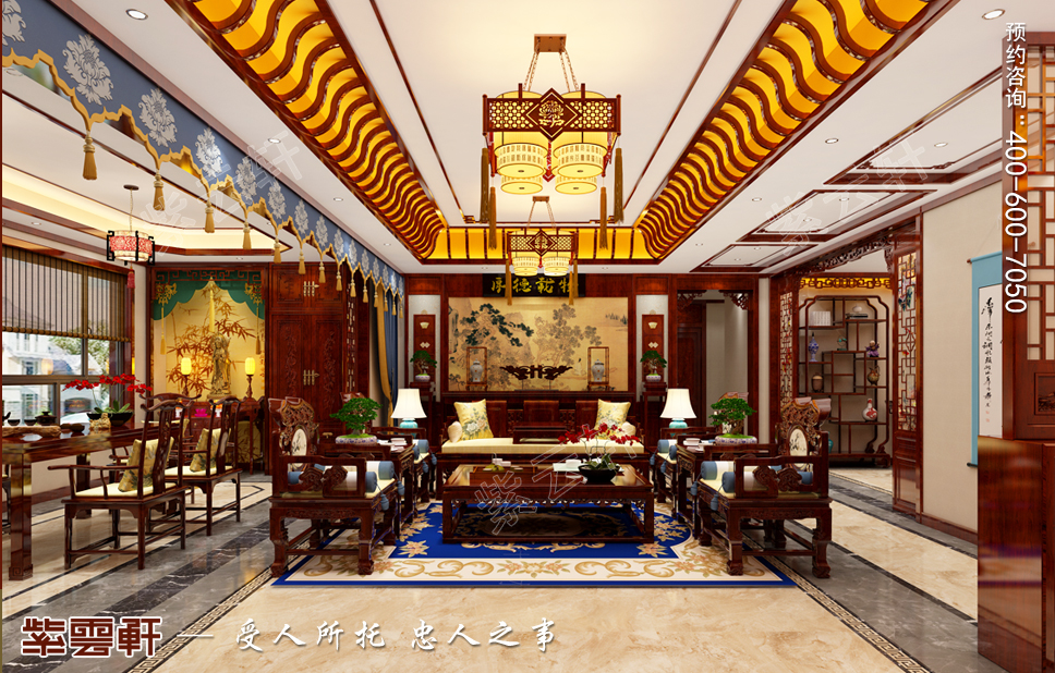 带有浓厚中式气息的红木客厅,放眼望去的气派感一览无遗。
