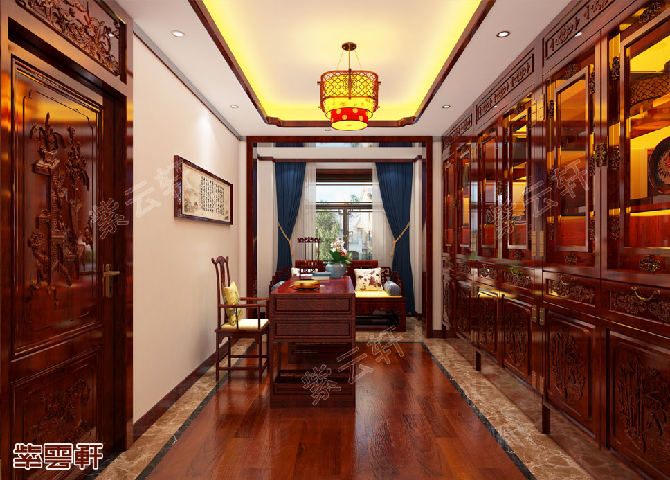 很多人认为书房只能拿来读书办公,其实书房的功能早就不止于此了,它还具备休闲、睡眠、储物等多种功能,是一处净地,更似一份向往。别墅在装修的时候都会留有一间书房,别墅中式装修风格中的书房要如何设计呢?中式书房更体现幽静典雅,一张书桌,一组书柜,身在其中,尽享悠然自在。