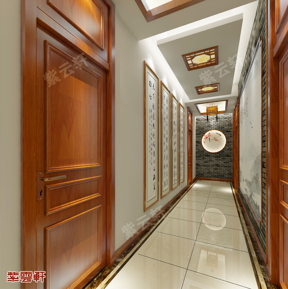 走廊的字画装饰简单大气不失风范,走在这间放屋里随时都能感受到浓浓的艺术范!