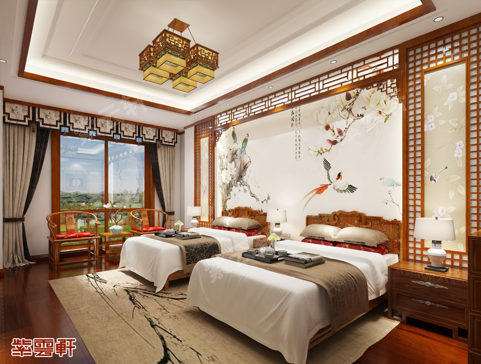 卧室,洋溢着平顺、柔和的氛围,又具有稳重、优雅的气质。墙面选用简单流畅的木格作为装饰,清新、明亮,散发着简洁优雅、唯美大气的层次之美。床头的两侧点缀清雅的床头灯,减轻了红木的厚重感,地板上贴心的铺上了地毯,整体非常精致优雅。整个空间真的算得上是豪华装修了,看一眼都不想离开了。
