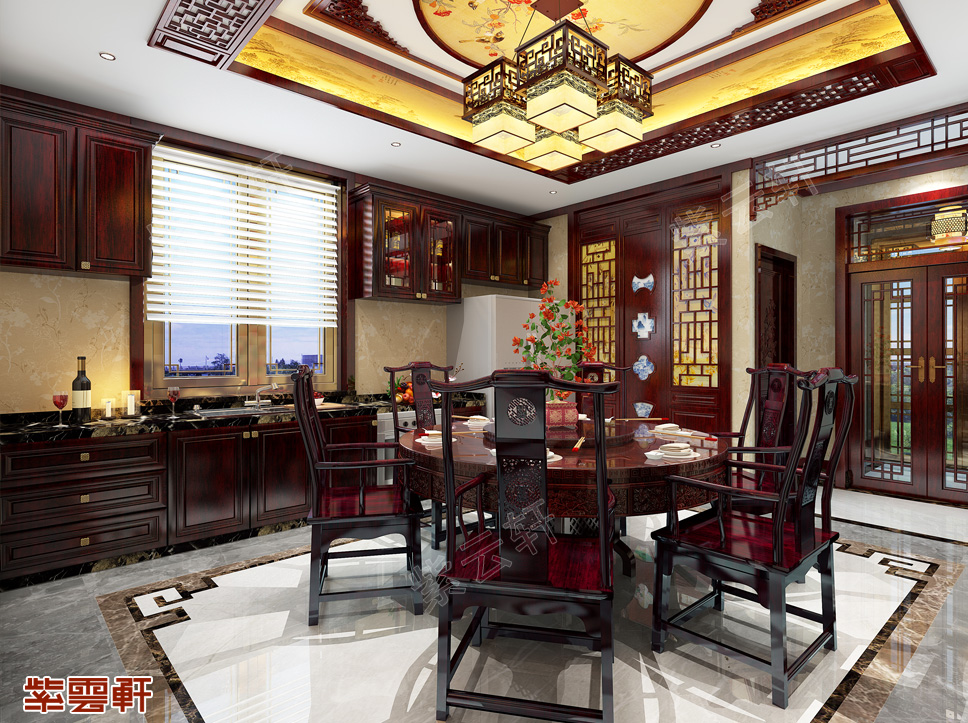餐厅,官帽椅组合将中式风格诠释的十分应景,端庄沉稳的配色尽显古典大气,厨房与餐厅相连节省空间,也是现代极简新中式最重要的表现形式。古典中式餐厅以木质材料为主,多一些雕花,多一份典雅,给家创造不一样的风景。