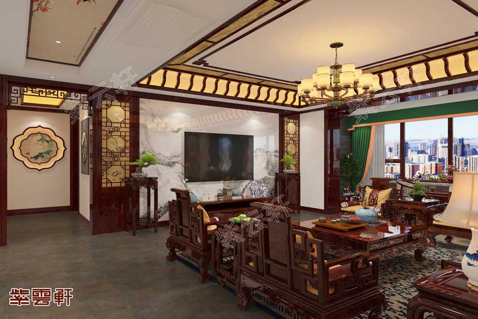 客厅,古典中式装修风格的客厅犹如宫殿般的呈现方式,尤其是大气磅礴的古典画,为客厅带来艺术力量,以文艺感提高空间质感。造型讲究的明式家具除了使用功能外,还具有陈设的功能,精美的雕刻造型让人感到十分惊艳。