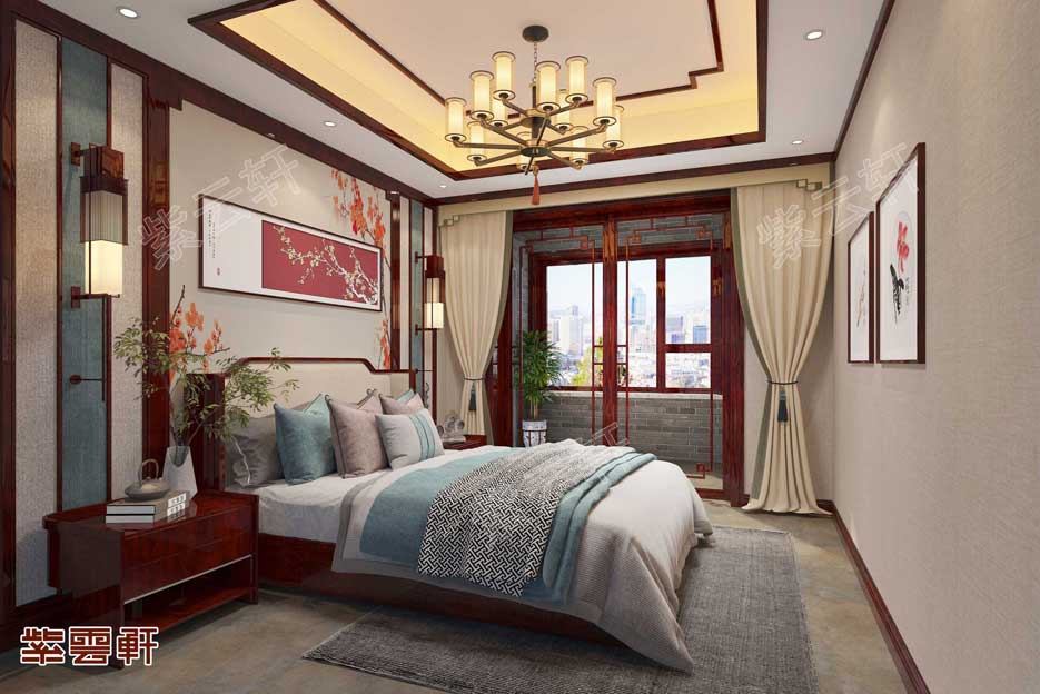 卧室,古典中式的搭配设计重点在于色彩和所搭配的物品要展现出简约大方的感觉,插花中像梅花,或者自己喜欢的一种绿色插花,不仅能展现出唯美的中式风情,也能完美地诠释中式家居设计的开放与包容。