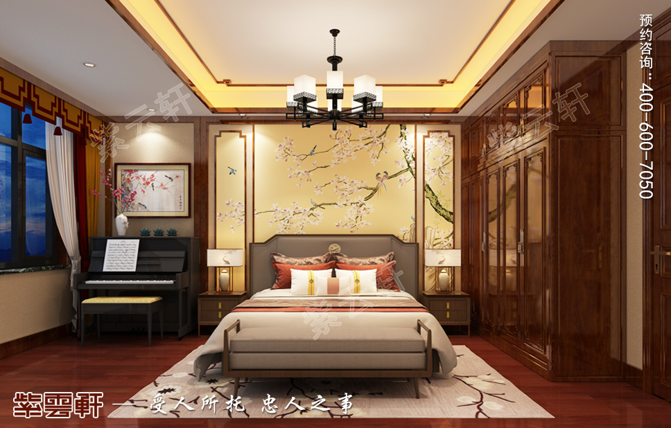 女孩房,角落里面钢琴的摆放可以看出业主对孩子的培养,望子成龙,望女成凤是每个家长的愿望。而且还为孩子打造了一间传统文化浓郁的卧室,整面墙的红木衣柜,再加上具有代表寓意的图案,激发了孩子的上进心,要青出于蓝更胜于蓝。