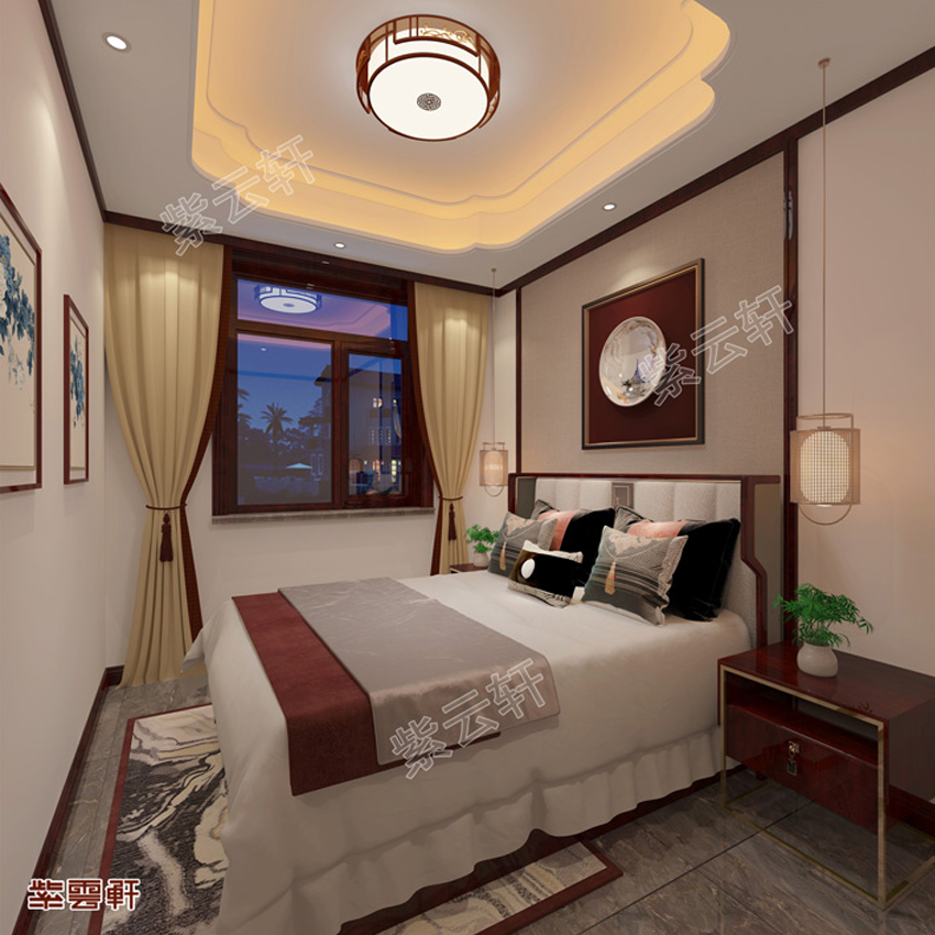 卧室,一件不经意的艺术品都可以成为卧室中的点睛之笔,一盏有创意的台灯,搭配对称摆放的绿植,再加上时尚美观的床头柜,感受到大自然的呼吸,整体格调非常的简约,但是更有一种时尚气息。古典别墅装修设计借助中式元素让家居更加丰富,展现大而不空、厚而不重的格调。