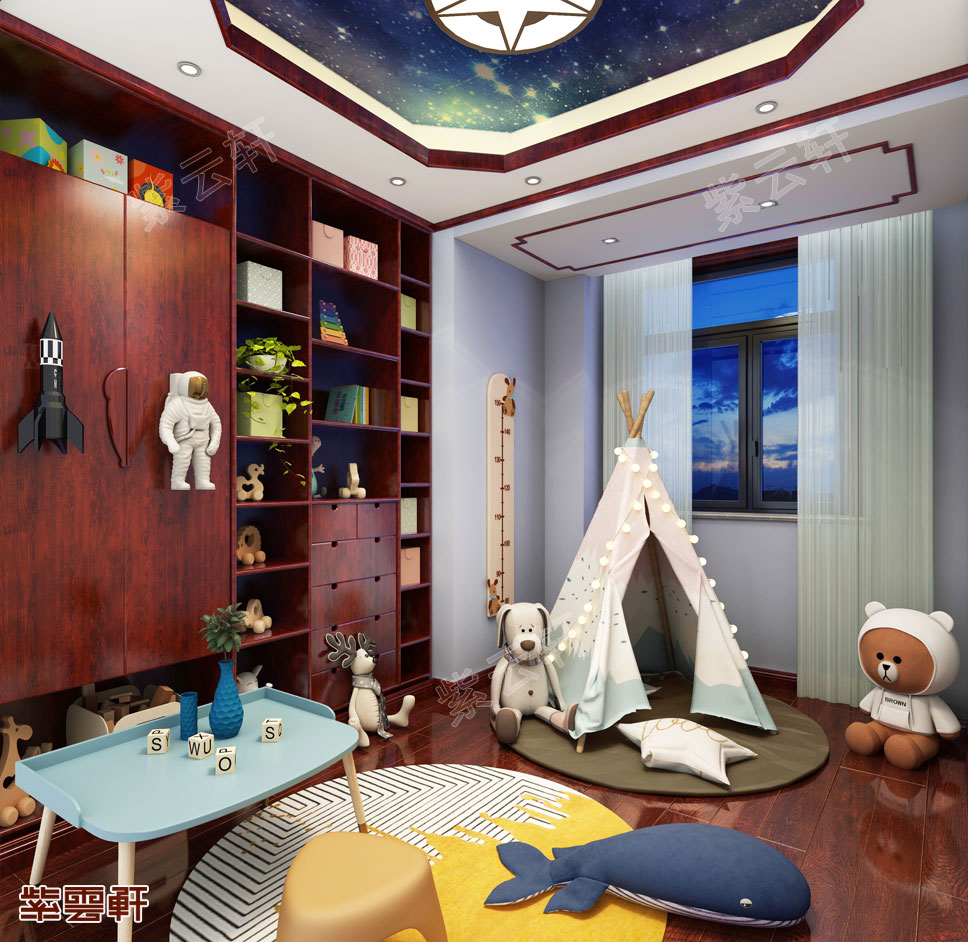 分享一套四室一厅的中式风格家居装修案例,房子位于内蒙古呼伦贝尔,房子的户型结构比较方正,业主平时喜欢邀上几个朋友在家中边品茶边下棋,所以在客厅后面单独分出一间茶室来,家具的大小和吊顶设计都因此做了特殊调整。